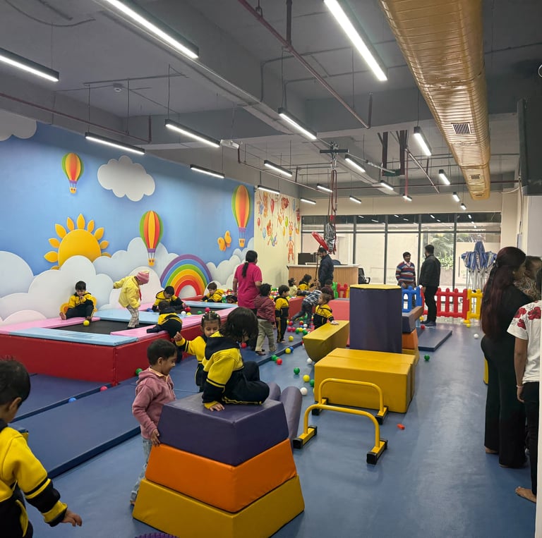 Our vision is to become the leading Gymnastic and entertainment destination through comprehensive child development center in Noida, India, focusing on gymnastics, fine and gross motor skills, cognitive development, and creative activities for children aged 18 months to 12 years.